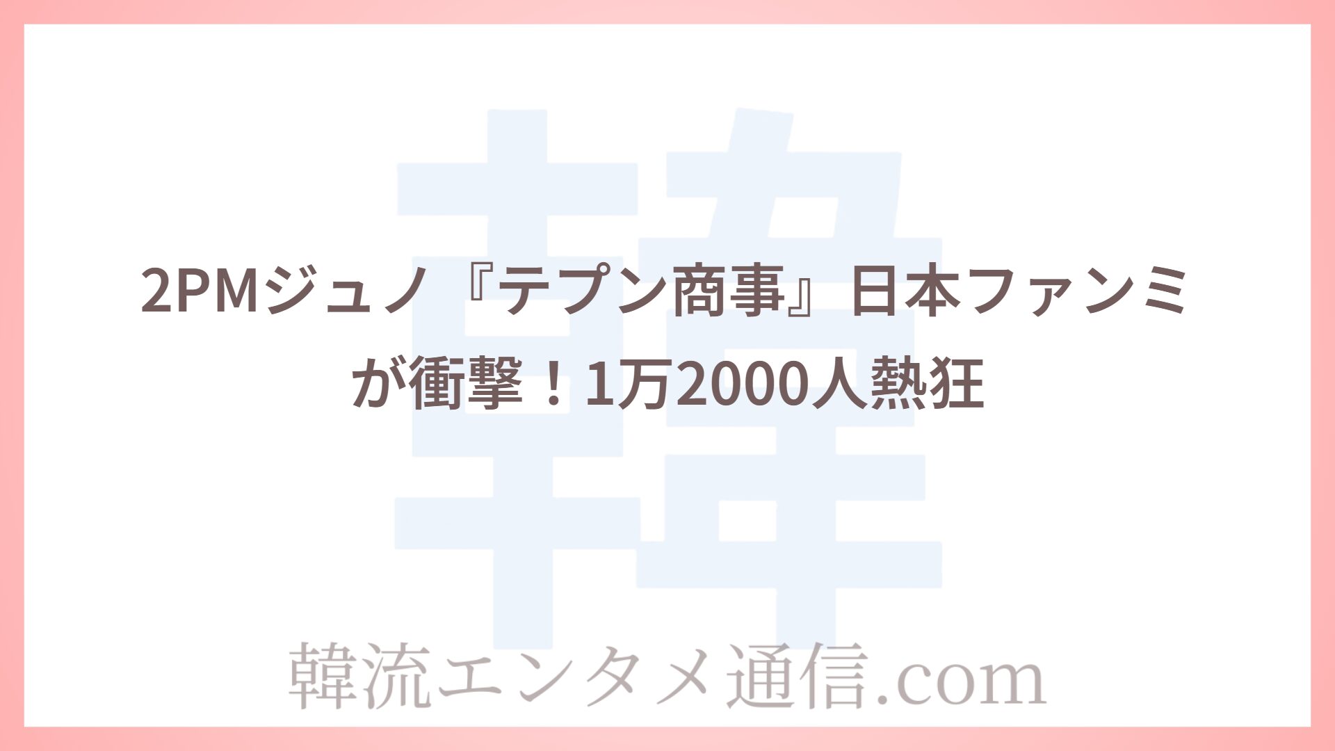 CATEGORY K-POP CORTIS快挙!NBAフェスでK-POP史上初ヘッドライナーに決定 2025.12.19 ボーイズグループ 韓流エンタメ通信 韓流エンタメ通信.com ゴールデンディスクアワード2026出演者が衝撃!Stray Kids・ZB1ら豪華18組 2025.12.18 K-POP 韓流エンタメ通信 韓流エンタメ通信.com MONSTA X完全体ライブ2026が衝撃!日本アリーナ公演の真相とチケット速報 2025.12.18 ボーイズグループ 韓流エンタメ通信 韓流エンタメ通信.com Apinkユン・ボミ結婚発表!9年愛が実る感動の経緯 2025.12.18 ガールズグループ 韓流エンタメ通信 韓流エンタメ通信.com 2PMジュノ『テプン商事』日本ファンミが衝撃!1万2000人熱狂 2025.12.17 ボーイズグループ 韓流エンタメ通信 韓流エンタメ通信.com ジョングク「ELLE KOREA」グラビアが圧巻!パリ撮影の9種カバー公開 2025.12.17 ボーイズグループ 韓流エンタメ通信 韓流エンタメ通信.com BLACKPINK東京ドーム記念!全国4大タワーがピンクに染まる衝撃 2025.12.17 ガールズグループ 韓流エンタメ通信 韓流エンタメ通信.com K-POPカムバ情報【2025年12月~】ブルピン・MISAMOら衝撃予定 2025.12.16 カムバック情報 韓流エンタメ通信 韓流エンタメ通信.com ENHYPEN新アルバム発売決定!"禁断の愛"描く衝撃カムバック 2025.12.16 ボーイズグループ 韓流エンタメ通信 韓流エンタメ通信.com 少女時代ユナ"女神ビジュアル"が衝撃!バンコクファンミ大盛況 2025.12.16 ガールズグループ 韓流エンタメ通信 韓流エンタメ通信.com 12…345