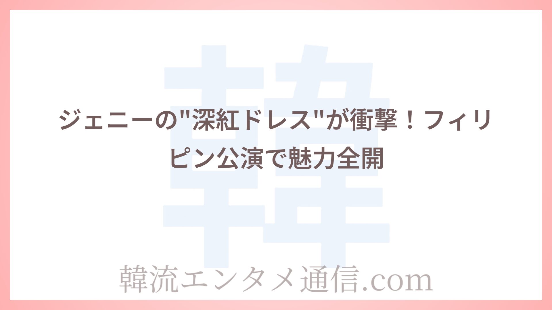 TAG BLACKPINK G-DRAGONジェニーが大賞独占!MMA2025衝撃の一夜 2025.12.26 音楽ニュース 韓流エンタメ通信 韓流エンタメ通信.com BLACKPINK東京ドーム記念!全国4大タワーがピンクに染まる衝撃 2025.12.17 ガールズグループ 韓流エンタメ通信 韓流エンタメ通信.com K-POPカムバ情報【2025年12月~】ブルピン・MISAMOら衝撃予定 2025.12.16 カムバック情報 韓流エンタメ通信 韓流エンタメ通信.com ジェニーの"深紅ドレス"が衝撃!フィリピン公演で魅力全開 2025.12.12 ガールズグループ 韓流エンタメ通信 韓流エンタメ通信.com